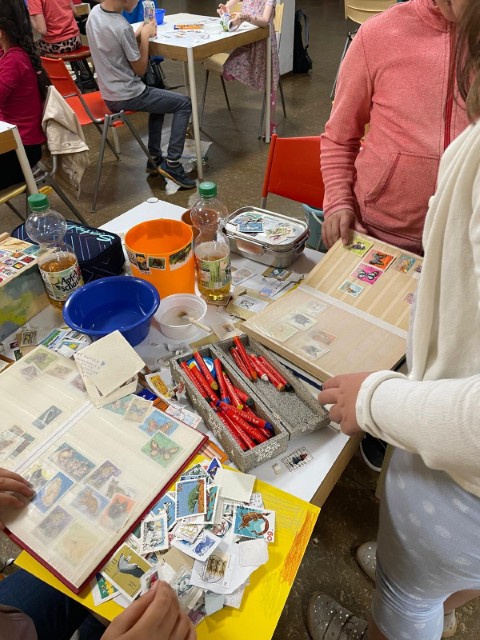 Zum Fe­ri­en­pro­gramm kamen ins­ge­samt acht Kinder aus Ham­brü­cken, um einen tollen Nach­mittag mit Brief­marken zu ver­bringen. An drei Sta­tionen gab es für die Kinder Neues und In­ter­es­santes über Brief­marken und Briefe zu ent­de­cken und zu er­fahren.