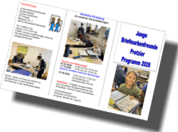 Jungen Briefmarkenfreunden Pretzier mit aktuellen Flyer für 2026