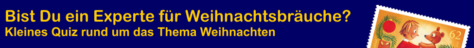 Nun, hier kannst Du zeigen, wie gut Du Dich in Weihnachtsbräuchen auskennst Schau Dir die abgebildeten Briefmarken immer genau an und wähle dann jeweils eine der vorgegebenen Antworten aus!