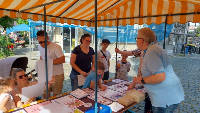 Schon kurz nach Start der Veranstaltung morgens um 11 Uhr war der Stand dicht umlagert, und das Team von den Jungen Briefmarkenfreunden hatte alle Hände voll zu tun, die Wünsche der Gäste zu erfüllen. Viele Gäste suchten den Stand auch im Rahmen einer Rallye zum Weltkindertag auf. Dabei galt es, eine kleine Aufgabe zu lösen, um einen der begehrten Rallye-Stempel zu ergattern. Erst in der späteren Mittagszeit hatte das Team Gelegenheit zu einem stärkenden Imbiss – belegte Brötchen, Limo und natürlich auch einige Süßigkeiten. Selbst beim Snack mussten wir uns abwechseln, denn der Besucherstrom riss erfreulicherweise nicht ab. Der Andrang hielt fast den ganzen Veranstaltungszeitraum bis zum Abbau um 16 Uhr an.